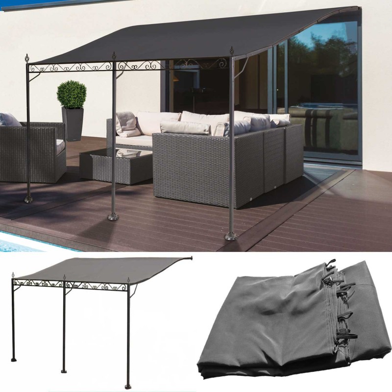 Toile de rechange grise pour auvent adossé 3x4m Paravent ...